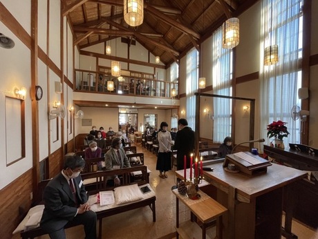 高知教会では毎週日曜日、神様への感謝と祈りをささげる礼拝を開いています。この礼拝はキリスト教に興味のある方でしたら、どなたでも自由に参加できます。お仕事などで日曜日の都合がつかない方は、毎週木曜日に行われる祈祷会(きとうかい=お祈りの会)がおすすめです。