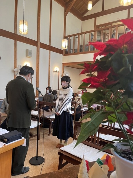 12月12日の主日礼拝の中で、Yさんが成人洗礼を受けました!