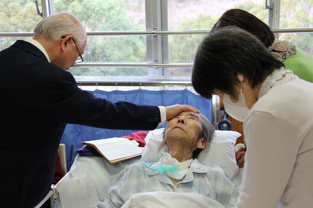 Nさんご夫妻(御主人91歳、奥様85歳)の病床洗礼式が、高知市内の病院で執り行われました。